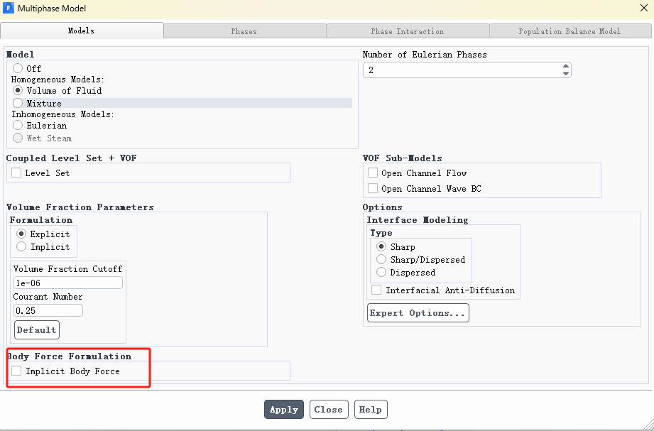 Implicit Body Force选项用于重力驱动的旋转流等体积力较大的流动,提高解的稳定性及鲁棒性。
