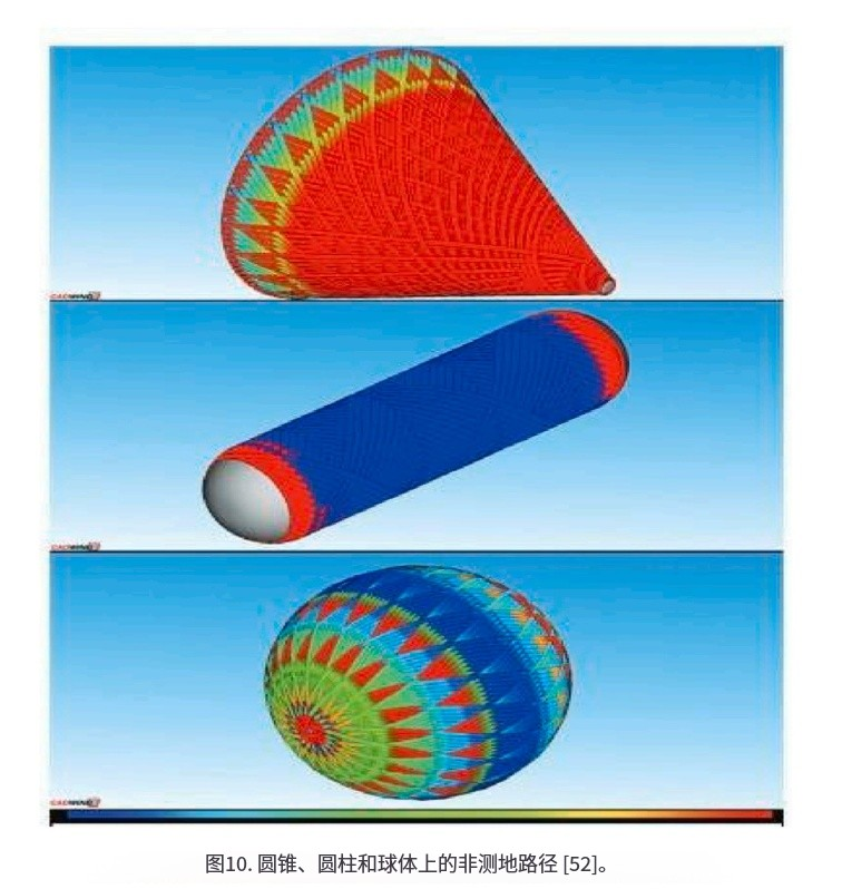 缠绕路径的设计直接影响容器的应力分布,主要分为测地线轨迹和非测地线轨迹两种:测地线轨迹是曲面上两点间的最短路径,具有稳定性好、无需额外力即可防止滑动的特点;非测地线轨迹则提供了更大的设计灵活性,但需要摩擦力来防止纤维滑移。Sofi 等人的研究表明,摩擦系数和初始缠绕角度是影响缠绕角度分布的关键因素。通过调整这些参数,可以实现测地线、非测地线或恒定角度轨迹,从而优化纤维方向与主应力的匹配度。这种优化能显著提升容器的结构效率,减少材料浪费。