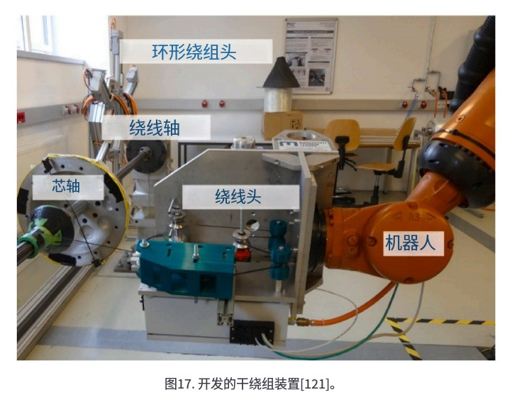 干法缠绕的最新进展是自动化与高速化。Stefan Neunkircher 开发的机器人系统,结合多功能缠绕头,可实现干法缠绕、预浸带缠绕等多种工艺,且通过光学传感器实现了缺陷的实时监测21。Andrew Weisberg 等人的研究则显示,干法缠绕可将容器生产周期从传统湿法的 3 小时缩短至 10 分钟,且无需烘箱固化,为大规模生产奠定了基础。