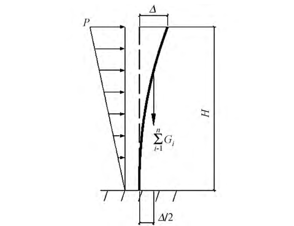 悬臂弯曲杆在倒三角荷载条件下的基底倾覆力矩为: