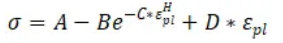对于试验出的应力应变曲线需要进行转换以及选择合适硬化准则外推得到符合要求的应力应变曲线,此步很关键。常用的拟合公式如下所示: