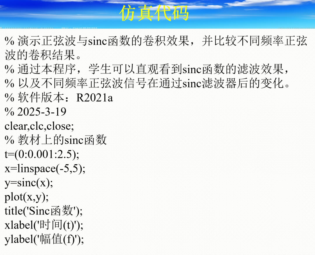 一学期结束了,同学们通过本课程学到了多少知识,又掌握了多少知识呢?《信号与系统》中的概念有没有通过仿真得到强化呢?本来开设这门课是为了让大家能够通过仿真辅助学习《信号与系统》课程,没想到大家却把这门课当成了学习的累赘,学习的目的也就是考试通过拿到学分,这让我有些失望。对于通信工程专业而言,《信号与系统》课程是非常非常重要的一门课,因为它是后面学习通信原理和数字信号处理的基础,这两门课也非常的难学。对于首次接触信号概念的学生而言,如果没有仿真加持,那么就会进入到纯理论学习的状态,这对后续的发展很不利。作为工程师,我深知这样的道理,所以在课堂上通过各种实验,让学生感受到信号的存在和如何使用的过程。再好的讲课,如果没有课后复习,那也很难学好。仿真课程,不仅需要消化理论,还需要有一定的编程能力。同学们在这两年的时间里面几乎没有动手编过太多的程序,所以开始上这门课的时候,我发觉很多同学力不从心。上述感想就是今年本课程的教学总结,后续不想再开设这门课了,会转为《通信原理》的方仿真。通信原理的MATLAB仿真将会在学完《通信原理》课程之后再开展。自我评价这门课的教学效果确实很一般,这让我有些沮丧,也在自责和自我反省。《信号与系统》课程的很多概念在本门课上通过仿真的形式展现给了大家,也安排了作业让大家课后进行复习。但大部分学生课后根本就不复习,再加上信号与系统的知识又比较难理解,所以上课的效果确实不好,让我再次焦急和痛心。暑假过半,又在考虑是否还开设这门课程了?本不想发布此文,因为有学生投诉我上课让大家经常看公众 号。通过公众 号的文章来帮助大家课内和课后学习是在课堂上早就强调了很多遍的学习方式,但只要有一位学生投诉,那就会对文章的推广有影响。当学完一个章节,投影仪只能停留在某一页PPT上,那么此时要浏览全部内容进行知识的回顾和总结,必然要有文章或者书籍来支持。这学期课程的PPT是本人根据网上资料改编的,没有一一对应的书籍,所以只有让大家看文章。至于你是否看其他文章,那是你的自由,我不会过问。就这种教学模式也会遭到投诉?惹不起就躲,不再向这一届学生推荐公众 号文章了。在这学期的后面几节课,我就对着电脑讲课,让大家不再看手机和电脑,在课上需要记住程序,课后在电脑上复现,这样应对考试绰绰有余。作为老师,一旦遭到投诉,就只能自身做改变,到了知天命的年纪,如果还要去和学生做解释,我觉得过的也太不坦然了。现在和学生的交流只能限于个别同学,不然多说几句就遭人烦,课堂上还是少说教育现状为妙。不管之前的方式是否有益于学习,我都要改,这样才能逐渐消除投诉的影响。那么如果之前的教学方式是有益的呢?那也要改。因为学院听到的是投诉,没有听到认可的声音(也许就没人认可)。现在的我会主动改,只有不得罪那些投诉的学生,我才能把课平稳教完,让自己安稳退休。针对这一届学生,我在课堂上不再说关于思政的话题了。当在课堂上讲述本科毕业后的失业现状和当下大学生的学习现状,确实有些刺耳,被投诉也属正常现象。那就闭嘴吧。上课把知识点讲完,也不要深究作业完成情况,省得引起矛盾。其实这样也挺好的,不操心,轻松很多。何乐不为?这不是嘲讽,是真心话。自己没有能力改变学习现状,那就适应形式,时刻保持警醒。曾经试想过如果请院士来教呢?也不会有太多改变。最多前几节课有些变化,后面继续回到现状。改变来自内驱力!上课的抬头率都无法保证,怎么保证把知识传授到学生的脑袋里?矛盾中!不多展开了,总之是自己的问题。少说为妙。这也是对之前课程涉及到的重要程序及相关知识点的总结!这样的程序要学几遍才不会出错呢?我教了三遍以上,课堂测验考了一遍,结果期末考试依旧有好几位同学出错。这可是最最基础的信号仿真程序啊!简答题汇总!