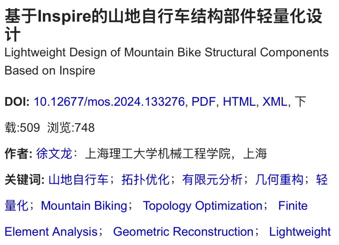 当山地自行车爱好者徐文龙将优化后的车架部件放在秤上时,他几乎不敢相信自己的眼睛——经过Altair Inspire软件重新设计的结构部件,质量减少了惊人的56.83%,同时完全满足强度要求。