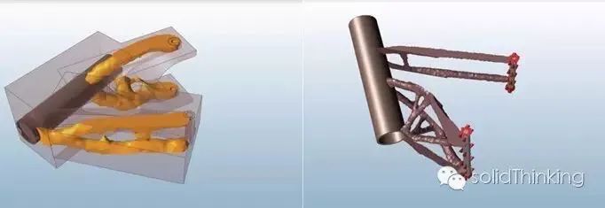 团队将现有设计导入虚拟环境,精确输入车架在极端骑行中的多维载荷数据。Inspire根据力学性能目标,智能删除不承担关键应力的冗余材料,生成有机形态的轻量化结构。