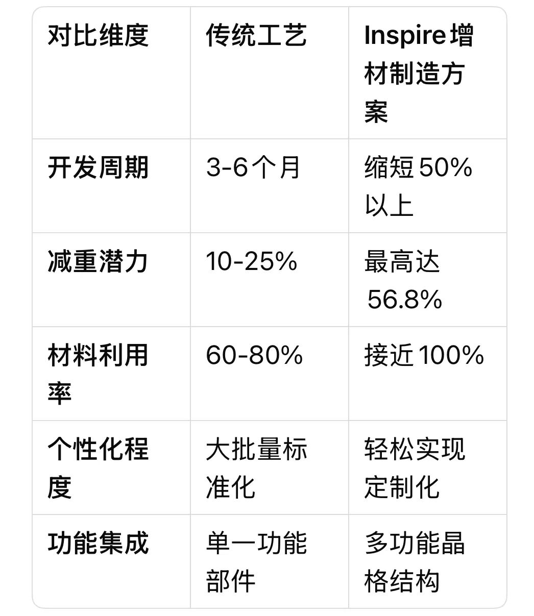 下表展示了传统制造与增材制造结合Inspire方案的核心差异: