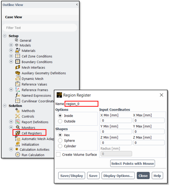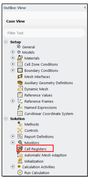 在初始化多相流的设置时,通常需要指定计算区域中 特定区域的相,可以通过Cell Registers实现