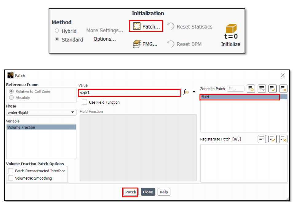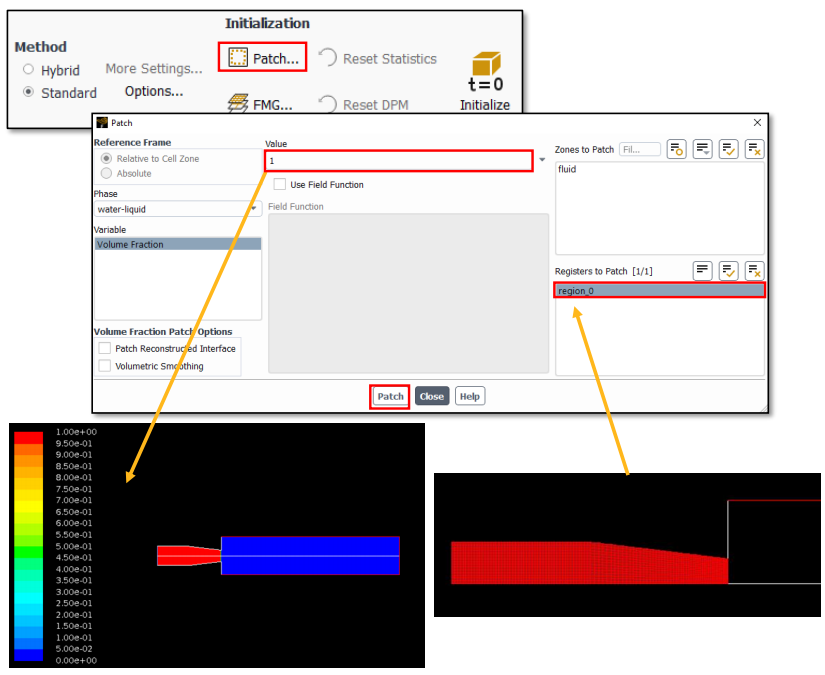 由于仅需求解次相的体积分数,因此可以在特定区域中Patch其初始体积分数。首相体积分数由次相体积分数推导得出