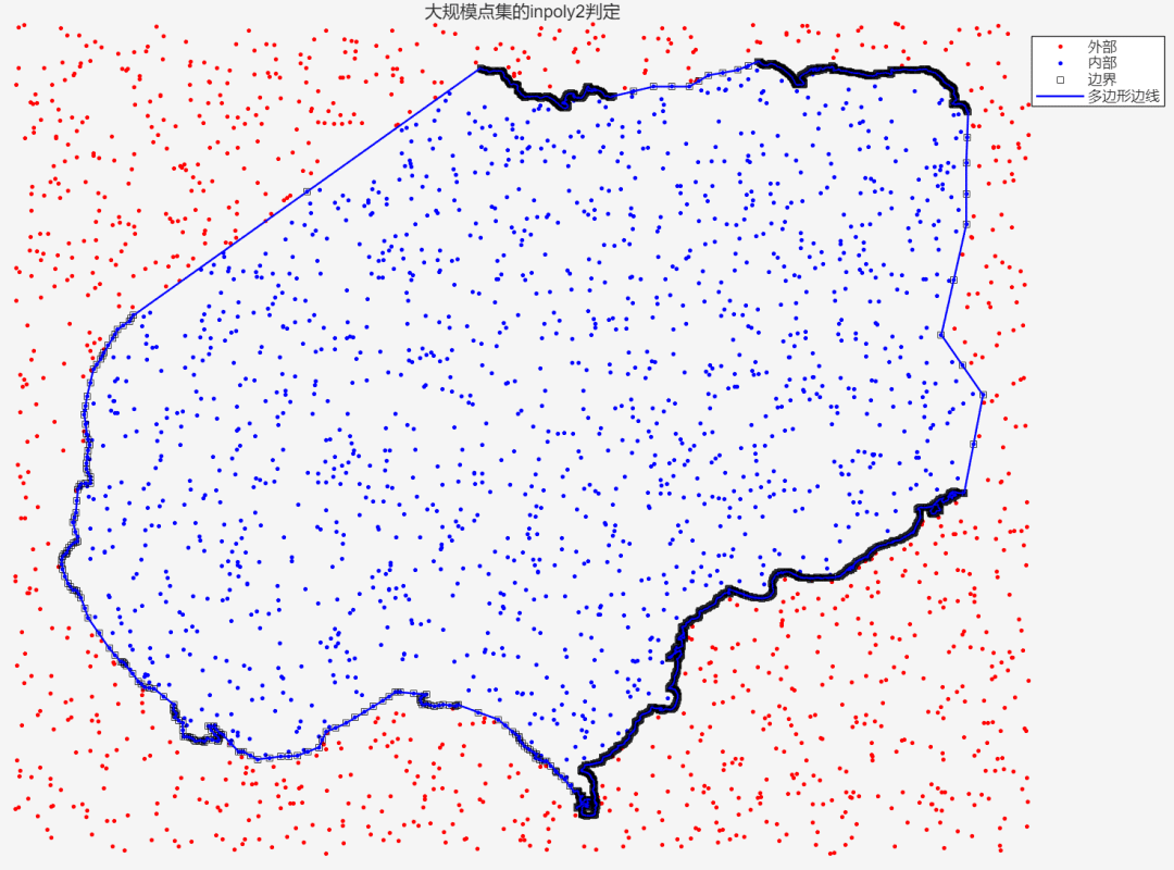 对于较为复杂的几何区域,将 inpoly2 与 matlab 内置的inpolygon 进行对比: