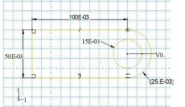 放置圆心,使其与上一步中创建的圆弧的中心大致重合。周长点应放置在中心点的右 侧。将同心约束应用于圆弧和圆。使用添加尺寸 工具将半径值更改为0.015m。 d.圆的周长点应与圆中心点位于同一水平面上(如图4-17所示)。如果这些点未正确 对齐,请确定每个圆心与其周长点之间的垂直距离,使距离为0。 注意:对零件进行网格划分时, Abaqus/CAE 会将节点放置在沿边出现 顶点的任何位置;因此,顶点在圆周上的位置会影响最终网格。将其放 置在与中心点相同的水平面上可生成更高质量的网格。 e. 完成轮廓草绘后,单击提示区域中的“完成”。 将出现“编辑基础拉伸”对话框。要完成零件定义,必须指定拉伸截面梁的距离。 f. 在对话框中,输入拉伸距离0.020m, 然后单击确定。