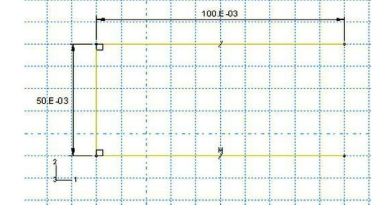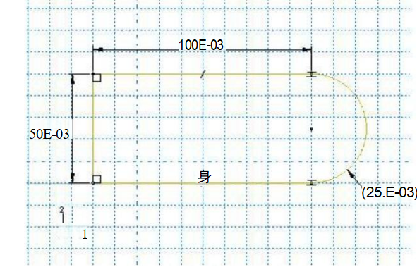 a.使用创建线条:矩形工具创建任意矩形。删除右垂直边,然后使用约束工具=◎将等 长约束指定给上边缘和下边缘。使用尺寸工具 调整轮廓,使其长0.100米×宽 0.050米,如图4-15所示。