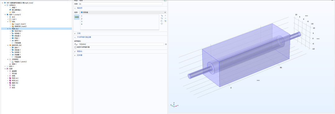 采用电流场耦合固体传热场的电磁热多物理场接口进行计算,具体边界条件如图4所示。