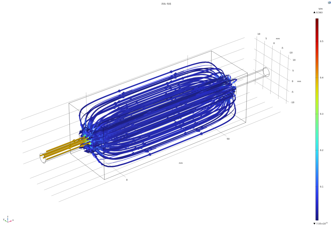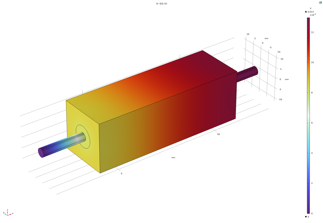 采用频域50Hz-稳态求解器进行求解,得到的熔断器电势、电场、温度等分布如下。
