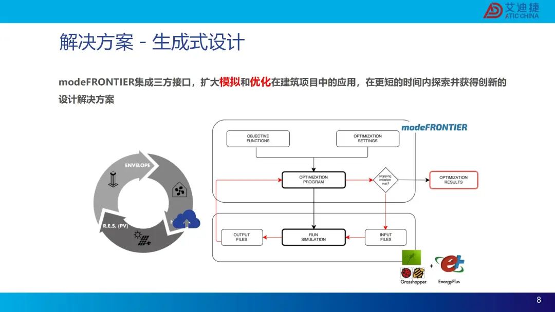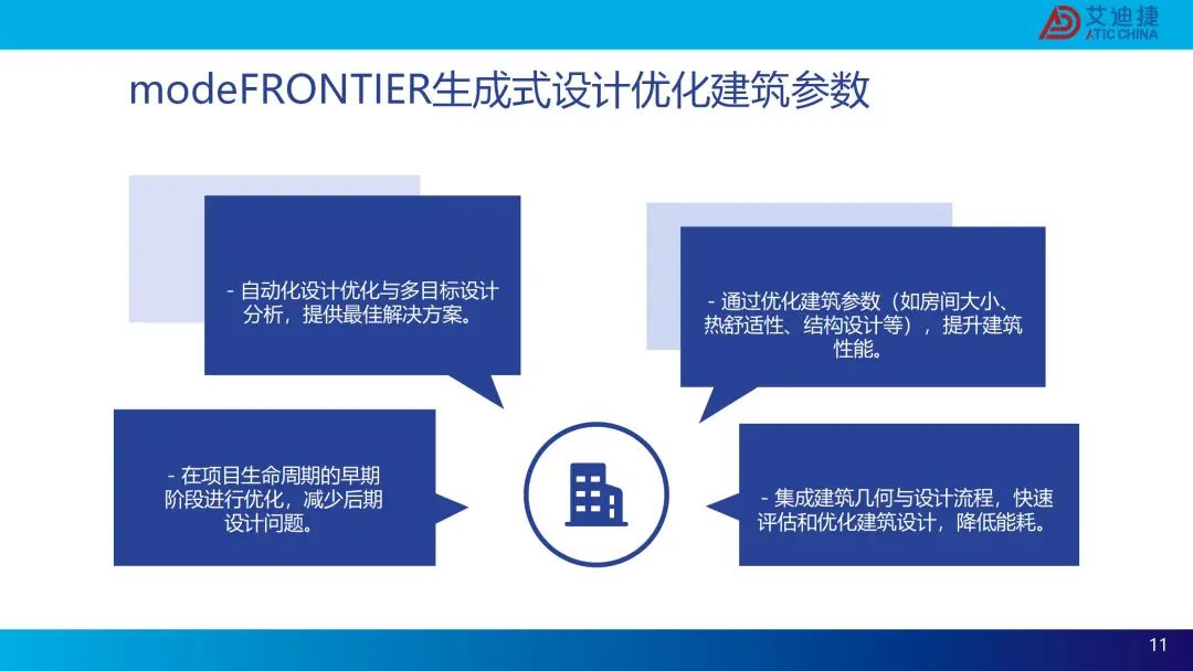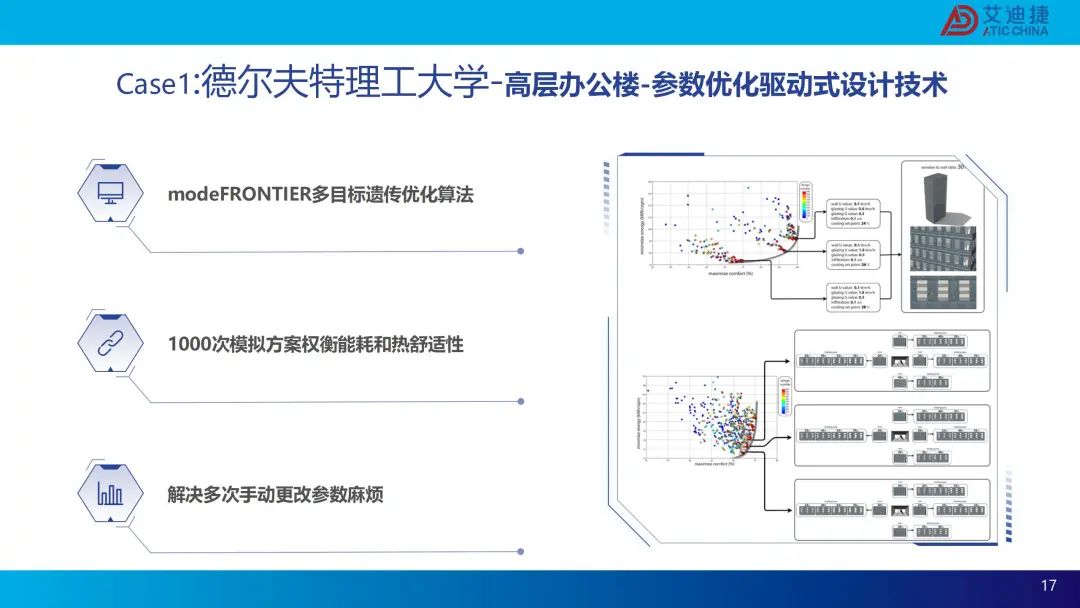 modeFRONTIER 提供了生成式设计解决方案,通过其强大的多目标优化和多学科整合能力,帮助设计团队快速生成高效、创新的设计方案。利用参数化建模与智能算法,modeFRONTIER 能够在满足复杂设计需求的同时,平衡多种性能目标。这种方法尤其适合应用于建筑性能优化、自然通风设计等,为建筑行业的可持续性和效率提升提供了有力支持。