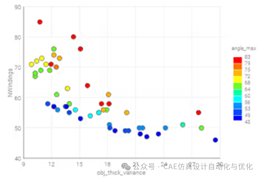 第二步涉及使用modeFRONTIER优化平台来修改几何参数,增加绝缘耐火材料的厚度以及加热线圈的尺寸。modeFRONTIER模拟生成了超过250个候选设计,然后确定了最佳设计和实现适当密封所需的加热过程的最佳时间。