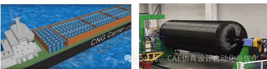 传统的用于船舶运输液化气体的压力容器无法用于运输压缩天然气(CNG)。这是因为为了维持300巴的操作压力所需的相关船舶壁厚会给容器增加显著的重量,降低它们的装载能力。事实上,该项目所解决的主要挑战之一是利用纤维缠绕技术生产轻型压力容器,用于运输压缩天然气。纤维缠绕是一种流行的方法,适用于制造轻、刚性的轴对称结构。它涉及使用几层纤维增强复合材料包裹在薄的内部金属衬里周围。