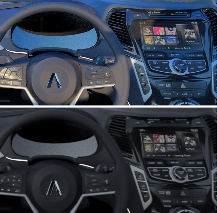 人眼原理中提到的视锥细胞视杆细胞活跃性产生的空间视野变化也可以在软件中得到体现。当假定在一个亮环境中时,ANSYS SPEOS会自动显示更多的细节、色彩及对比度,而在暗视觉中,色彩和细节将会明显减少。