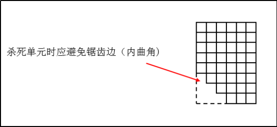 非线性分析中, 在杀死或重新激活单元时注意不要产生奇异点 (例如结构分析中尖锐的内曲角) 或大的刚度突变,这种情形很可能引起收敛困难。