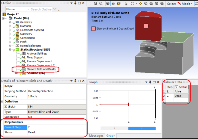 Ansys Mechanical软件在Workbench环境中有三种方式实现单元生与死: