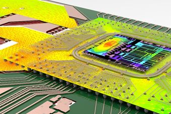 使用Ansys Redhawk-SC Electrothermal™对一个多裸片芯片封装的结果显示不同温度下的温度分布和结构翘曲