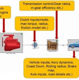 目录 1.研究目的2.研究过程3.各档位动态扭矩计算及分析4.应用1.研究目的 基于柴油机ECU逻辑和整车瞬态特性,对GT-SUITE搭建的整车模型的控制系统进行完善,提高整车模型计算过程中发动机瞬态扭矩的预测能力。本文主要研究每个档位下当加速踏板完全踩下后,0.2s内发动机从低怠速到高怠速的转矩变化过程。瞬态扭矩的影响因素主要有:涡轮增压器滞后、怠速调节、中冷器效率、冒烟限制、ECU逻辑等。2.研究过程 2.1 发动机模型的创建和稳态计算的标定根据发动机结构及相关性能参数,在GT中搭建详细发动机模型:再基于测试数据对发动机模型参数进行标定,标定后的计算结果与测试结果对比如下:2.2 FRM 模型转换为提高模型的计算速度快,以便进行后续的整车计算,利用GT-SUITE自带的快速计算模型转换工具“FRM Converter”,在不损失关键结果精度的情况下,提高模型的计算速度快。转换后可以得到x8~x14倍RT计算速度的模型,且转换前后的误差在2%以内,BMEP和BSFC的误差如下:2.3 搭建整车模型并与详细发动机集成2.4 转换为瞬态计算模型并加入相关ECU控制逻辑固定壁温只适用于稳态计算或温度变化不大的部位,但排气管路温度变化较大,且直接影响进气压力和进气量,所以需要将排气管路的壁面温度设置成基于计算壁温,并基于测试数据对换热系数和换热倍率进行标定。根据实际情况对增压器的转动惯量进行设置,并根据实际扭矩响应过程,VGT控制器的最大关闭速率和最大打开速率进行设置。为更好的控制各档位下的怠速,将怠速设成变量。加入加速踏板map、ASDmap、FMTCmap、冒烟限制map以及增压压力map后,再根据ECU控制逻辑在GT-SUITE里面添加对模型参数的相关控制。3.个档位动态扭矩计算及分析 3.1 中冷器效率对扭矩的影响:3.2 冒烟限制对扭矩的影响:3.3 ADS对扭矩的影响:3.4 不同档位下增压压力的误差:发动机增压压力的准确预测是动态扭矩预测的前提。3.5 不同档位下油耗的误差:3.6 不同档位下进气量的误差:3.7 不同档位下扭矩的误差:3.8 不同档位下加速时间的误差:4.应用完成前面的标定后,利用该模型对不同增压器的动态性能进行了预测,并在此基础上对VGT与废气阀增压器进行了最终的增压器选型。该模型还可用于RDE循环的排气后处理系统入口处温度的预测温度,以便对后处理进行选型。 来源:艾迪捷