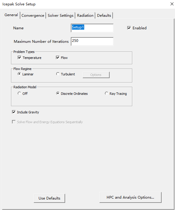 11、此时可以Add Solution Setup了,在弹出的菜单中,可设置最大计算迭代次数,热分析求解类型等,在Convergence页设置收敛条件;