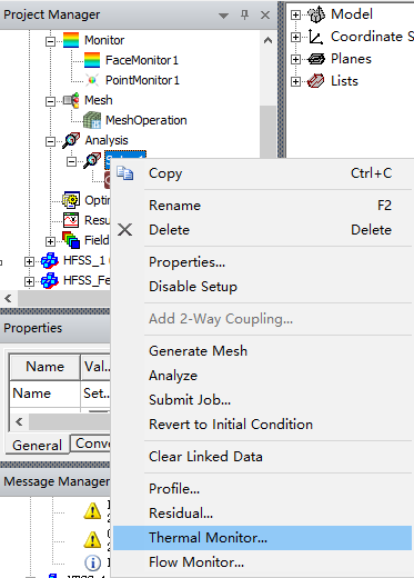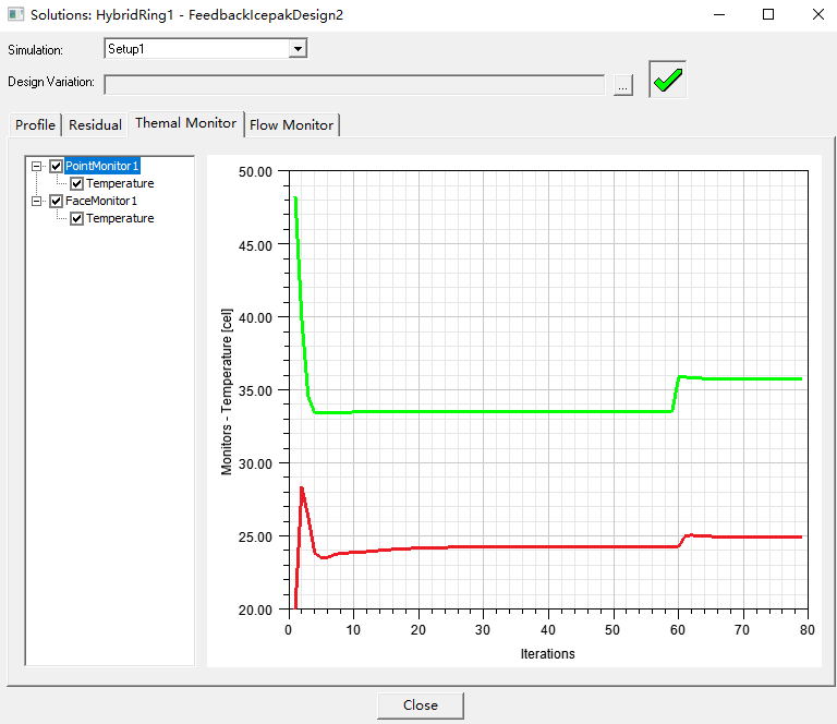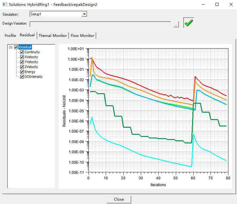 14、设置完成后即可开始仿真,Icepak和HFSS自动完成双向耦合分析过程,无需人工干预,仿真完成后,可右键Setup,点击Thermal Monitor或Flow Monitor,查看收敛情况;