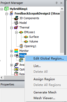 6、在左侧Project Manager栏中右键点击Mesh,选择Edit Global Region,根据仿真精度与仿真速度的需求,选择合适的mesh设置,也可在Advanced页进行手动mesh设置;