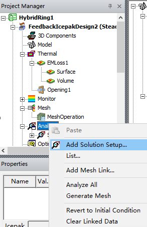 1、HFSS电磁场分析完成后,在同一个工程下建立一个Icepak项目;
