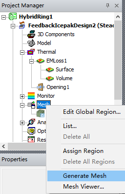 7、热仿真中Mesh过程是单独进行的,可右键点击Mesh,选择Generate Mesh生成网格;