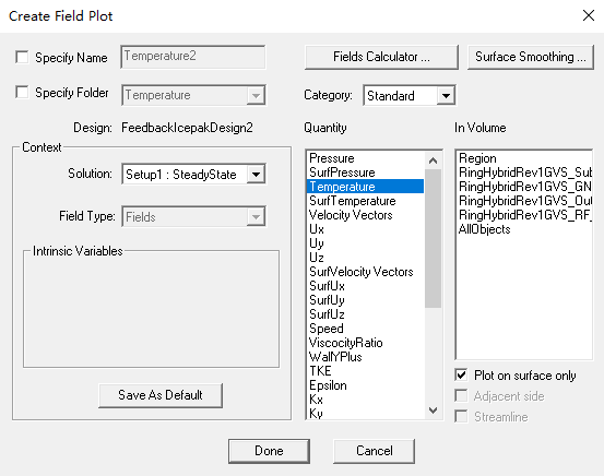 15、选中Ring,右键选择Plot Fields,选择Temperature,在弹出的菜单中勾选Plot on surface only,即可输出双向耦合仿真温度场结果彩虹图;