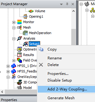 13、右键Setup设置双向耦合,可以设置耦合次数和每次耦合最大迭代次数;