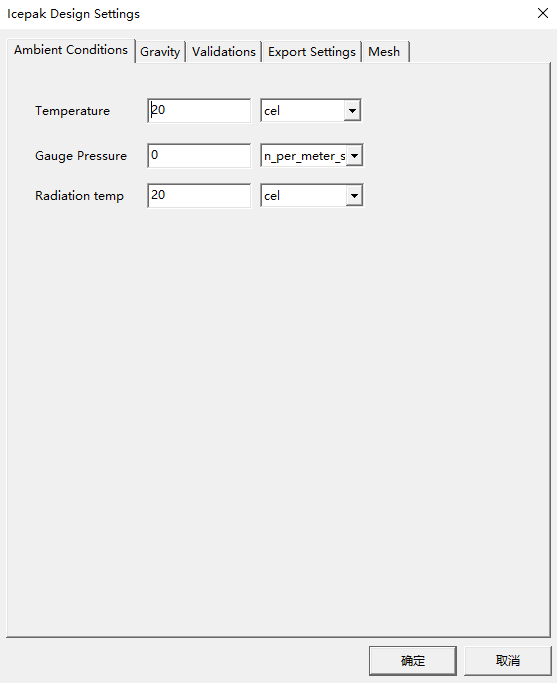 10、在Design Settings中,可设置仿真初始状态,此处默认常温;