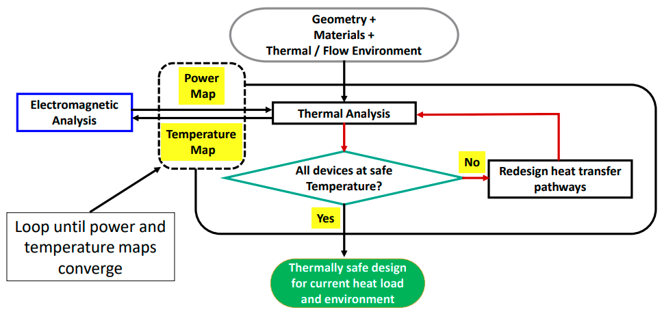 随着现代电子产品集成度的迅速提升,产品热密度也越来越大,电子产品热分析诉求强烈。传统的电磁仿真不能考虑温度的影响,而传统的热仿真无法考虑电磁损耗所带来的分布式焦耳热的影响,这使得单独的电磁仿真和单独的热仿真的误差比较大。