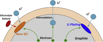 当过充时,负极电位过低,后续的锂离子会堆积于负极材料表面形成金属锂。这种金属锂沉积在负极上,降低了负极的孔隙率,随着沉积金属锂的增长,形成锂枝晶,穿破隔膜,导致内短路。析锂的反应式为