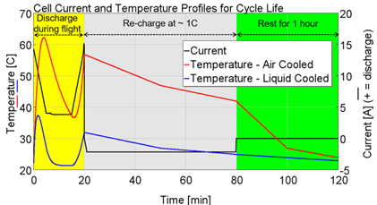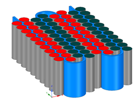 本例针对一个飞机上应用的圆柱型电池包,使用 GT-Autolion 分析风冷和水冷两种热管理策略对电池循环寿命的影响。本例的计算流程为