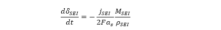为活性材料在电极中的体积分数。活性材料的损耗导致了电池容量的衰退。CEI膜厚度的变化通过一个简单的质量守恒方程描述,如下式