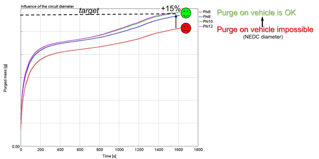 其中,管径对炭罐系统的影响已经试验验证,使用GT-SUITE的分析结果对炭罐系统管径进行优化。