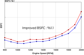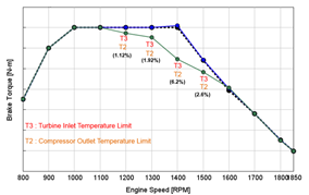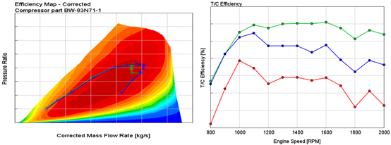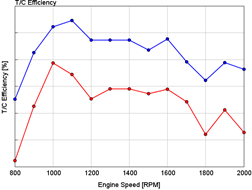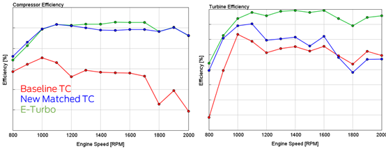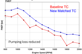•优化增压器的匹配可改善BSFC,其中涡轮机效率也有着近5%的增幅