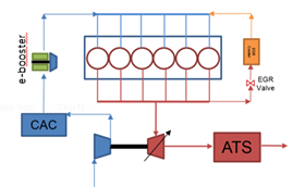 •于CAC中冷器下游安装电驱压缩机,即E-Booster模式