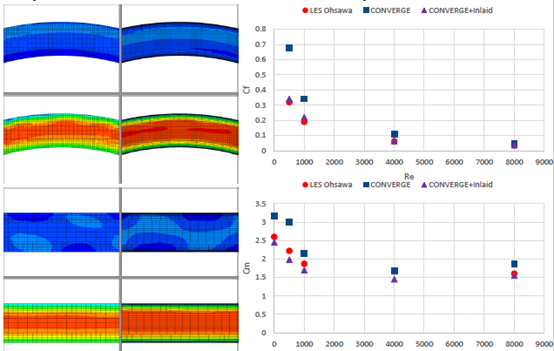 一、利用GT-SUITE对点燃式发动机进行循环变动模拟对于循环变动对于发动机的燃烧、排放、噪音、车辆的驱动特性等有很多不利的影响。具体的不利影响如下图1所示。如何有效的降低循环变动是重要的研究的方向。图1 循环波动对于发动机性能的影响本文研究的目的是模拟缸内燃烧现象的循环变化,并检验GT-模型的有效性和鲁棒性。二、研究方法为了建立准确的模型,我们进行了如下图2所示的操作流程。具体的操作流程说明如后所述。图2 具体的操作流程2.1倒拖模型标定把实际发动机安装在测试台架上进行发动机的倒拖测试。建立如下图3所示的测试台架。图3 发动机倒拖测试台架并测量的各个传感器的安装位置。进行如图4所示的测量。图4 传感器的安装位置测试根据实际的几何特征,建立起对应的发动机的模型。并根据上述测量的位置定义模型的入口位置,并根据传感器测试的数据进行模型的建立。具体的模型如图5所示。图5 标定倒拖的仿真发动机模型在图5所示的进、排气边界上输入测试的瞬态的压力与温度曲线。在模型中定义发动机的热边界、发动机几何参数、压缩比、气阀的流量系数、气门间隙等。利用模型计算节气门全开(WOT)条件下,发动机转速从2000rpm到7000rpm,间隔为500rpm的仿真数据。并进行测试数据与仿真数据的标定。图6是测试与仿真数据的气缸内瞬态压力数据的对比。图6 倒拖缸压与仿真缸压对比倒拖标定结果当模型的输入参数,包括:进、排气阀的升程;阀的流量系数;压缩比;气门间隙;气门正时输入正确时,仿真与测试缸压的方差(RMS)小于7%。当某些工况的误差明显时,需要进行气缸的泄漏和曲拐的刚度需要进行一定的修正。当仿真缸压与测试缸压一致时,根据倒的力矩或功率,反求出发动机的实际摩擦损失。并以此作为边界输入后续的发动机模型中去。2.2建立非预测的燃烧模型在倒拖模型的基础上,添加喷油器模型。并根据传感器测试的数据输入到模型的边界上。主要输入的参数有:进气系统、气缸和排气系统的瞬态压力数据与温度。具体的模型如图7所示。并根据测试的数据输入热边界条件,定义:空燃比、摩擦损失等。并进行发动机的性能数据测试,发动机转速从2000rpm到7000rpm,每间隔500rpm。GT-SUITE软件会自动的根据输入的缸压数据,计算出气缸内的燃烧速度曲线,并根据燃烧速度曲线计算出对应的缸压曲线,并对比两条缸压曲线的差别。用于模型的确认。图7 非预测燃烧模型及输入图8是在发动机转速为7000rpm时,测试与仿真的结果对比。从图中可以看出非预测燃烧模型能很好的对标测试数据。图8 发动机7000rpm,WOT的缸压对比2.3预测性的燃烧模型在2.2的步骤中,确认了测试缸压与仿真缸压的数据对比没有偏差的情况下,进行预测燃烧模型的标定。在2.2的计算结果中,可以查出当进气门关闭时,气缸内气新鲜空气的容积效率、残余废气系数、空气捕集率、燃油捕集量等。可以把这些结果输入到单缸机的模型中去,如图9所示。在单缸机模型中导入燃烧室的几何形状,并定义火花塞的安装空间位置、火花塞间隙等。图9 预测燃烧标定模型及参数化输入对于预测燃烧模型,对如下四个参数进行标定,得出唯一的一组数以满足标定要求。具体的参数有以下向个:-Dilution Exponent Multiplier(DEM)-Flame Kernel Growth Multiplier(FKGM)-Turbulent Flame Speed Multiplier(TFSM)-Taylor Length Scale Multiplier(TLSM)以最小化RLT:Improved Burn Rate RMS Error去优化预测的燃烧率。最终优化的后的参数结果如下表1所示:表1:预测燃烧模型优化后参数标定预测燃烧模型后的缸压对比结果如图10所示。图10 三种缸内压力对比结果从上述结果来看,预测燃烧模型的精度满足要求,可以进行后续的工作。2.4带有预测燃烧模型的全模型根据2.3得出的预测燃烧模型,代入到完整的发动机模型中去,建立的模型如图11所示。图11 带有预测燃烧模型的发动机模型2.5循环波动预测燃烧模型的标定对于燃烧变动的特性来说,大量循环的循环间燃烧变化服从正态分布曲线。通过预测燃烧模型得到湍流火焰速度系数和泰勒长度尺度系数的均值。为了训练模型来模拟CCV,要把湍流火焰速度系数和泰勒长度尺度系数的标准差需要找出来。这两个值可以通过GT-SUITE软件模拟出来。具体的输入方法如图12所示。图12 燃烧变动的方差输入模板根据某个工况的多个循环测试缸压数据进行分析。在此采用4500rpm下,WOT的数据进行如图13的处理。得出循环变动的相关系数。主要分析的参数有:最大爆发压力、最大缸压对应的曲轴转角和每个循环的IMEP值。具体处理参数如图13。图13 某工况下的循环变动参数为了获得4500rpm、WOT条件下的循环波动的特征值与测试的数据一样,通过优化把湍流火焰速度系数和泰勒长度尺度系数的标准差优化出来。优化变量是:TFSM和TLSM的方差;优化目标:IMEP的均值、IMEP的方差、最大缸压的均值、最大缸压的方差、最大缸压对应的曲轴角度的均值、最大缸压对应曲轴转角度的方差为目标。优化目标值的具体设置如图14所示。图14 循环变动优化目标值设定最后优化的结果如下表2所示。表2:优化后TFSM和TLSM的方差结果当发动机其它参数,如:点火提前角、气门正时、压缩比等变化时,表2的数值不变。2.6循环变动预测燃烧模型的有效性确认循环波动模型的有效性确认。当采用CCV对发动机的性能进行模拟时,模拟