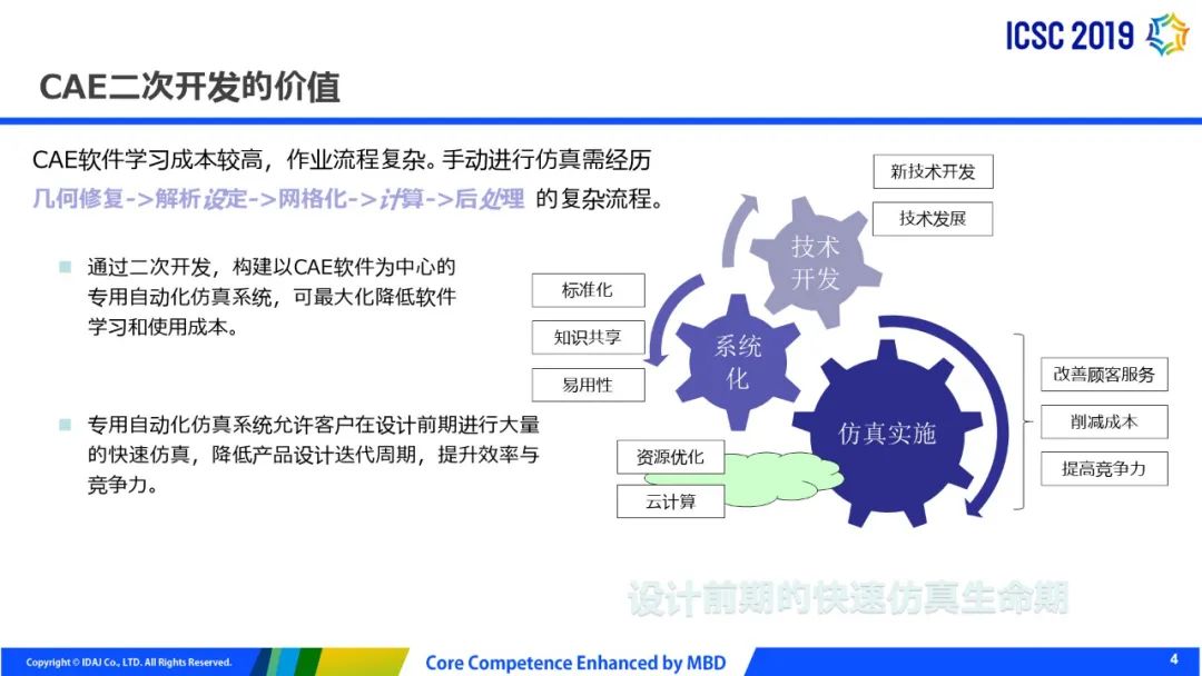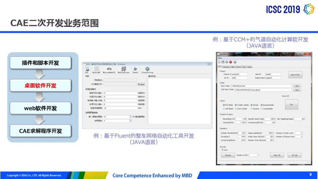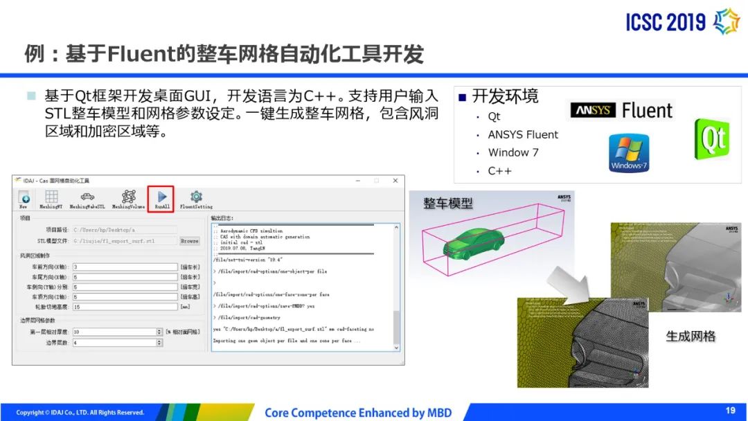 SpaceClaim交互网格SpaceClaim Interactive Meshing (SCIM)是ANSYS 2019版本中发布的,第一版发布时主要面向结构方面用户。交互式几何和网格划分工具可实现高保真的六面体网格划分,MultiZone技术与SpaceClaim的直接建模工具集成在一起,专为需要强大的手工网格功能的高级用户设计。2020版本拓展到流体方面有结构化网格需求的用户,关注稳健性和易用性的提升,进一步支持Python脚本。 SpaceClaim网格面向哪些用户SpaceClaim网格划分为耗费大量时间生成结构化或部分结构化的六面体网格(3D)或四边形网格(2D)的高级用户提供了针对性的功能。改进工作流程,与传统的块结构网格划分工具相比,需要更少的动手时间。对于CFD用户,我们推荐使用2020 R1版本来处理2D四边形网格和较低复杂度的3D六面体网格问题。 进入Mesh功能区在SpaceClaim中,在File下SpaceClaim Options选项卡下选择Customize>Ribbon Tabs,勾选Mesh后,在软件界面主菜单中会增加Mesh功能区。 Mesh功能区概述 六面体网格的多种生成方式方式一:几何分解劈分几何共享拓扑生成网格 方式二:块分解生成网格劈分块转换为映射或扫掠块方式三:边界框分块生成块劈分块关联块到几何方式四:面(sheet)分块和拉伸生成面块拉伸到体块每种方法都有一些优点,有些是特定于模型的,也可以混合使用。 将网格转移到Fluent Solver及WB支持您可以使用Workbench选项卡中的Mesh to Solver选项将SpaceClaim网格转移到ANSYS Fluent。在Fluent Launcher中选择了适当的选项来启动ANSYS Fluent中的 Solution模式。SCIM和Fluent在Workbench中的连接方式如下: 全新网格输出选项您可以使File>Save As选项将网格数据导出到文件(或右键点击Blocking并选择Save)为以下格式:‐ ANSYS (*.inp) ‐ CGNS (*.cgns) ‐ LS-DYNA (*.k) ‐ Fluent (*.msh) 还可以通过两种其他格式将几何图形导入Fluent Meshing中:- Fluent Meshing面片(facet)几何(*.tgf)- FM Database(*.fmd)(用于输入到容错网格划分工作流程) 线尺寸改进您可以基于高度和比率来指定边上的尺寸偏移, 在Bias method下拉菜单中选择Height and ratio。这对于流体近壁高度设置至关重要,并且后续版本计划了更多的偏差选项。 半结构化映射网格半结构面网格类型用于映射网格沿一个方向的过渡,同时沿另一个方向保持使用C-grid类型过渡,而无需进一步分解。可以在网格划分之前对几何图形的面定义或者网格划分之后通过转换面块定义。 基本操作脚本化全面的脚本支持正在进行中,现在支持以下功能:‐ Add tool ‐ Delete tool ‐ Association tool ‐ Split tool ‐ Merge tool ‐ Validate blocking 改进流体工作流程的质量指标当物理类型设置为流体时,Orthogonal quality是默认质量度量。 其他改进- 根据入口/出口命名(Named Selection)等的存在自动检测流体域中的流体/固体单元类型。- 改进扫掠/映射网格。- Tet Mesher四面体网格更新为质量/性能的最佳算法。- 改进的块可视性选项,如增加绘制附加块选项Draw Attached Blocks。- 在对块划分六面体网格后改进非结构化块网格,主要是改进与预先划分网格块的连接。- 其他稳健性,图形化和易用性上的多种改进。更多ANSYS软件新功能,请您持续关注公众 号更新内容。来源:艾迪捷