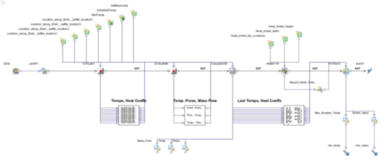 在本项目中,modeFRONTIER将用于集成上述软件,建立优化流程,进行多目标优化。所建立的优化流程如下图: