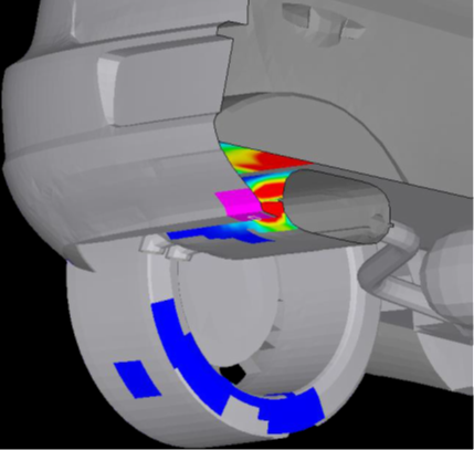 ESTECO公司、GAMMA公司、BETA公司以及THERMOANALYTICS公司的专家们联合,基于优化软件modeFRONTIER、车辆一维系统仿真软件GT-SUITE、网格变形工具软件ANSA、辐射及热仿真软件TAITherm,对消声器的隔热罩进行了多目标优化,在减小隔热罩质量的同时,尽量降低保险杠温度,以防止油漆剥落。