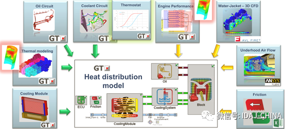 使用GT-SUITE搭建热管理系统模型,进行稳态工况点和瞬态驾驶循环模拟;
