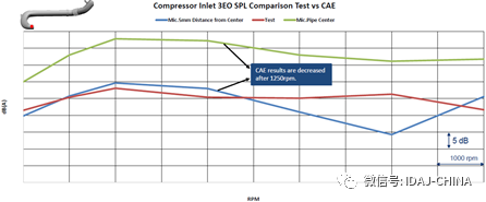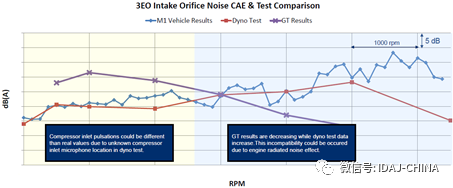 在发动机台架试验和仿真对标的过程中,发现仿真结果和试验结果差距比较大。通过原因排查,认为主要是由于压缩机进口管麦克风位置的导致的(此处可能是测试失误,没有记录具体 位置,或者是传感器安装问题),因此补加另外的对比测试。