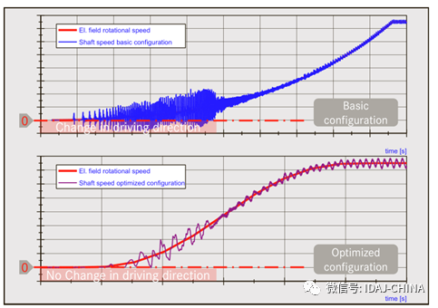 优化压缩机启动转速曲线,可以发现优化后,基础方案中压缩机的负转速区域消失,转速波动变缓。