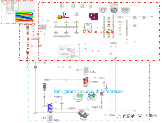 使用GT-SUITE搭建包括详细压缩机模型、压缩机机械结构、制冷剂回路在内的空调系统模型