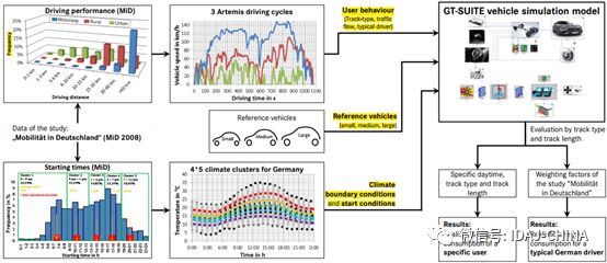 根据实际的路况和驾驶员行为、不同的车型、不同的环境条件下,通过GT-SUITE搭建的各类整车模型进行能量分析。