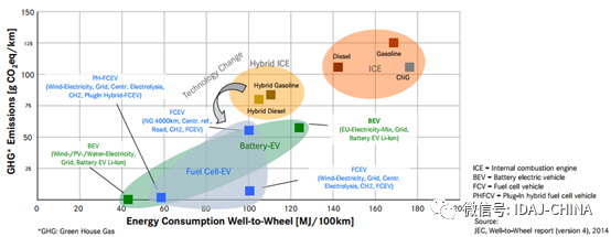 下图为2020+ EUCAR参考车辆的CO2和能量对比。其所参考的车型满足以下条件: