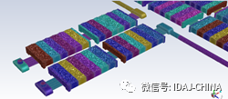 初始几何模型使用ANSYS的几何处理工具SpaceClaim中进行几何预处理,并处理各个域中间的拓扑连通关系。使用ANSYS Fluent全新的水密网格工作流程处理表面,该流程自动化程度高,流程化的操作方式简单易用,网格质量非常好。本文中电池包模型面网格数量308万,体网格类型为多面体网格,体网格数量为567万。体网格整体及截面示意如图15所示: